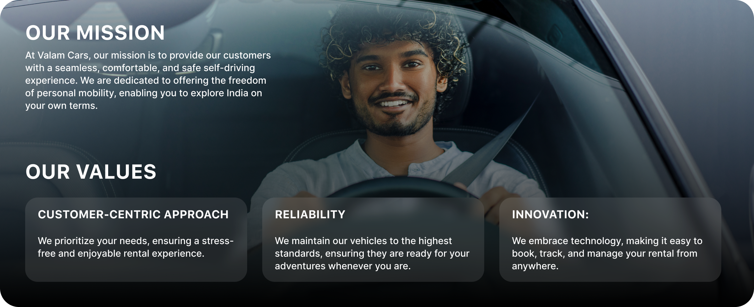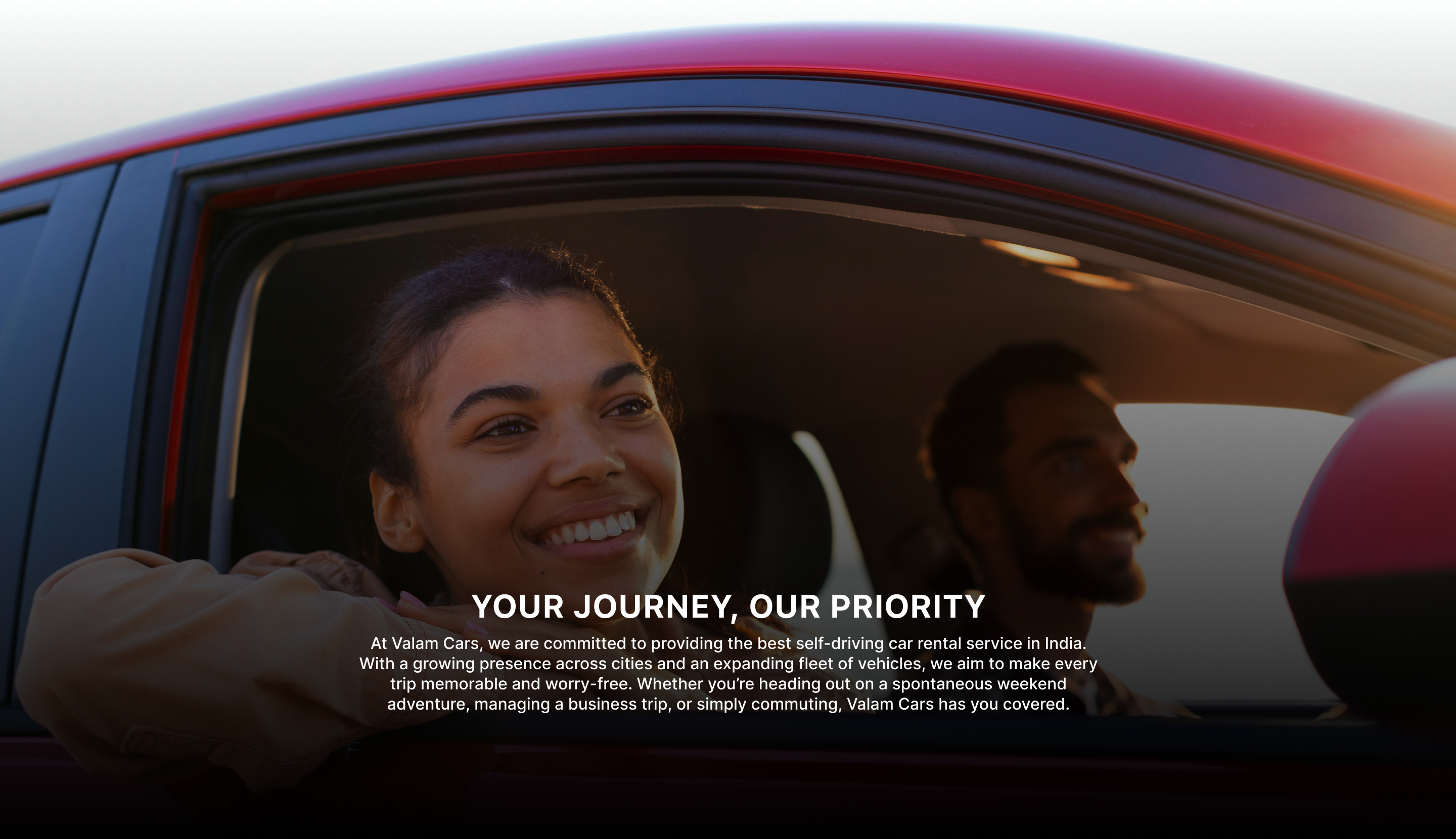 Welcome to Valam Cars, India's premier self-driving car rental service! At Valam, we believe in empowering people to take charge of their journeys, offering a hassle-free and reliable self-driving experience. Whether you need a car for a quick city trip, a long weekend getaway, or a business journey, we provide an easy and flexible solution for all your travel needs.